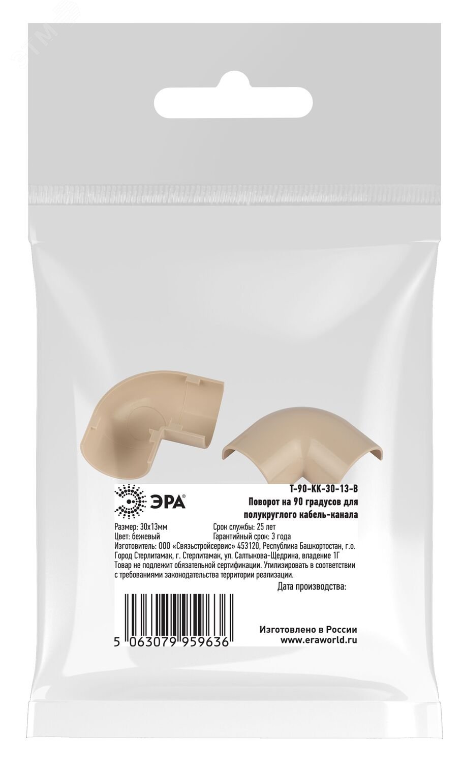 Поворот T-90-KK-30-13-B на 90 градусов для полукруглого кабель-канала бежевый 30х13мм 2шт/комплект-необходимый аксессуар для создания единой кабельной трассы. Позволяет производить соединения и ответвеления при монтаже полукруглого кабель-канала. Страна производства Россия. Тип крепления защёлкивание (под нажимом)