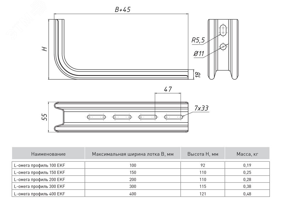 Профиль L-Омега 400, производитель: EKF — купить с доставкой