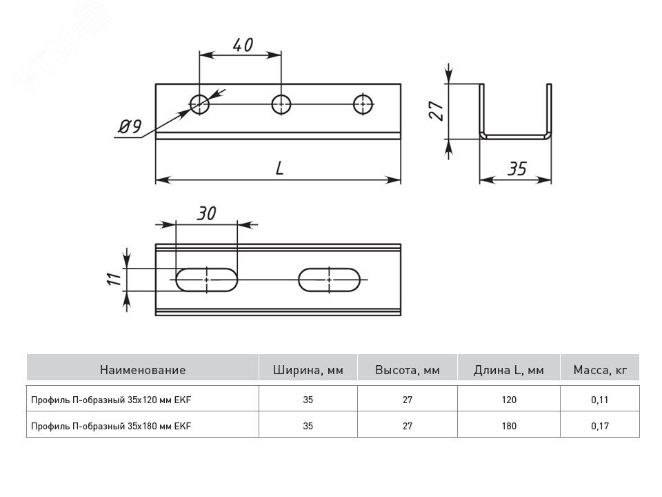 Профиль П-образный 35х120мм PROxima, производитель: EKF — купить с доставкой