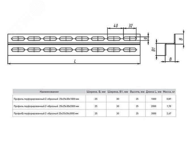 Характеристики: Профиль перфорированный Z-образный 25х30х1000мм