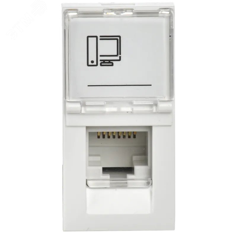 Модульные электроустановочные изделия 45х45 серии ПРАЙМЕР предназначены для организации рабочего места с применением кабель-каналов, напольных лючков или розеточных блоков, а также для открытого монтажа в коробки типа КМКУ. Розетка компьютерная RJ-45 предназначена для подключения сетевого кабеля компьютерной и прочей оргтехники. Розетка на 1 вход. Комплектуются одним модулем Keystone Jack категории 5е UTP IDC. Размеры, ВхШхГ,мм: 45х22,5х41,7. Цвет - белый. Размеры модульных ЭУИ ПРАЙМЕР: 1 модуль - 45х22,5 мм 2 модуля (1 пост) - 45х45 мм