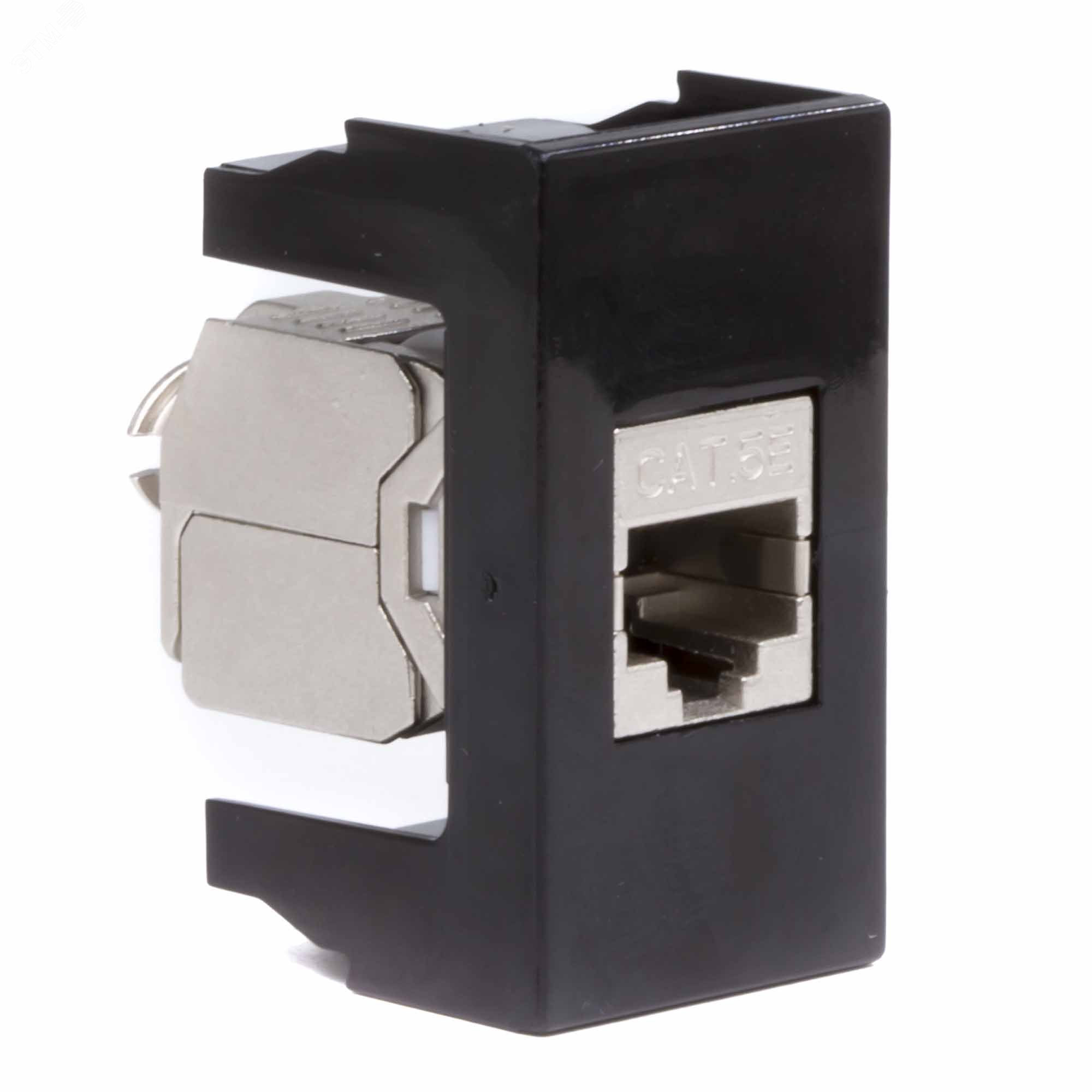 Компьютерная розетка. Назначение- подсоединение кабеля к компьютеру, принтеру и прочей оргтехнике. Характеристики- 8Р8С,комплектуются одномодульным гнездом,для заделки контактов в розетки использовать инструмент типа 110. RJ-45. Категория- 5е, экранированная. Тип гнезда- Keystone. Производитель гнезда- Hyperline. Установочный размер- 45х25. Кол-во модулей- 1. Цвет- черный