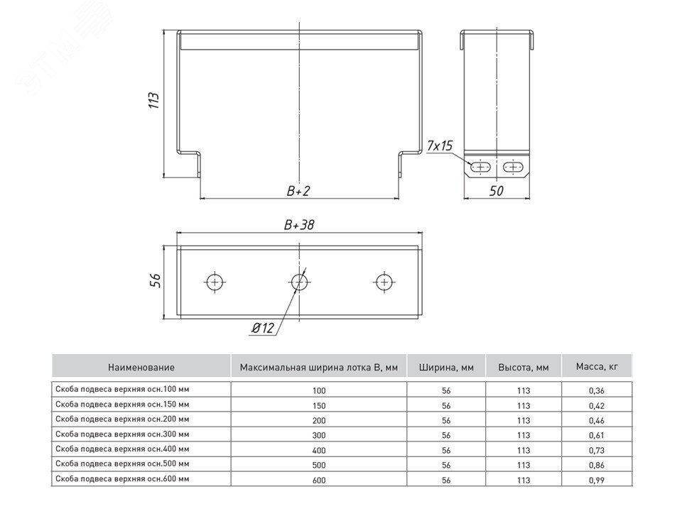 Скоба подвеса верхняя 200мм (2мм) HDZ, производитель: EKF — купить с доставкой