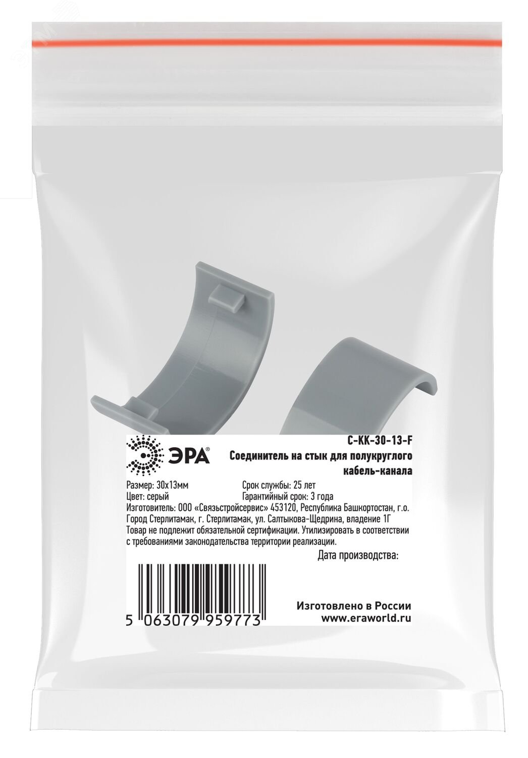 Соединитель C-KK-30-13-F на стык для полукруглого кабель-канала серый 30х13мм 2шт/комплект-необходимый аксессуар для создания единой кабельной трассы. Позволяет производить соединения и ответвеления при монтаже полукруглого кабель-канала. Страна производства Россия. Тип крепления защёлкивание (под нажимом)