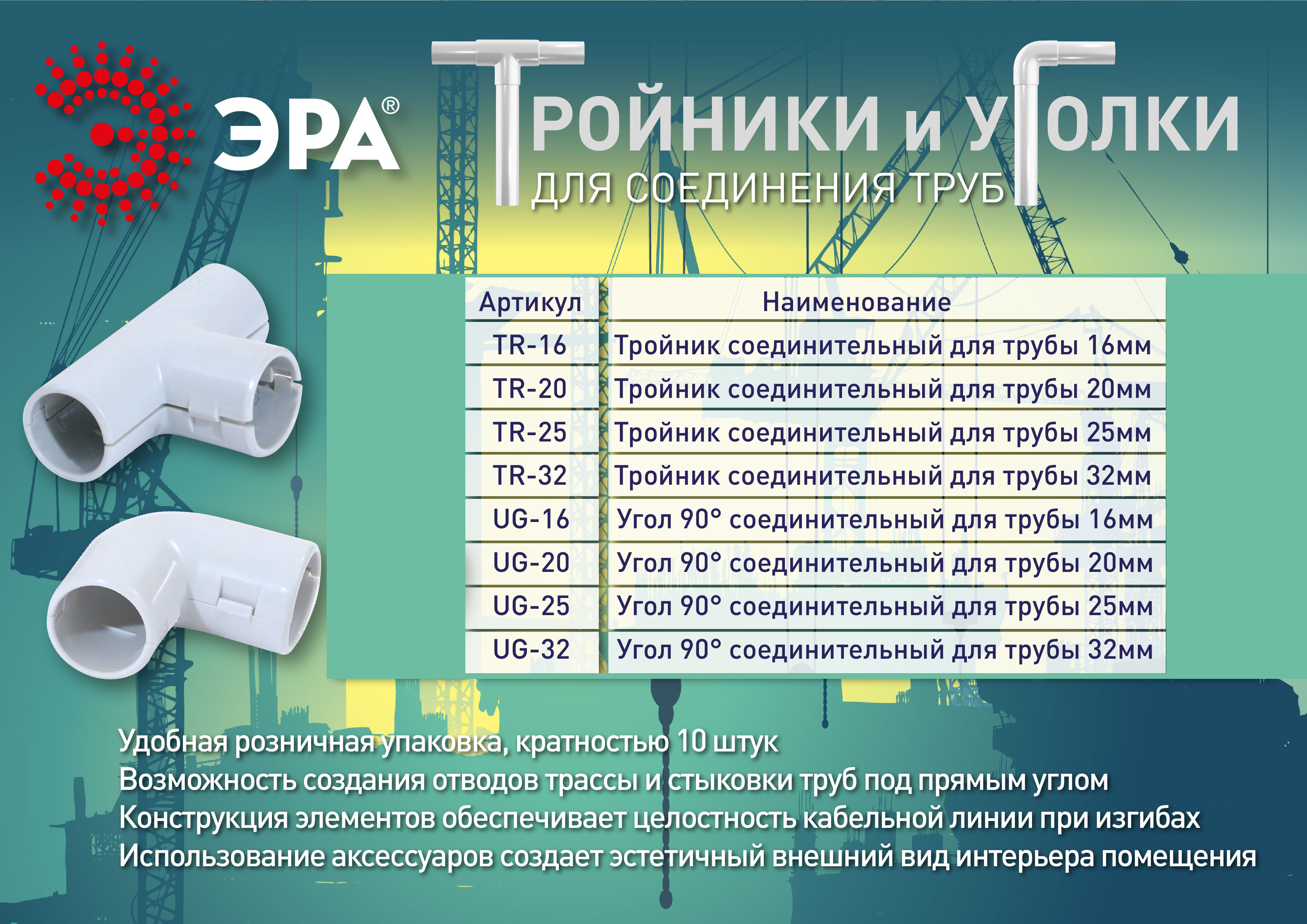 Тройник (серый) соединительный для трубы 20мм (10/250/6000), производитель: ЭРА — купить с доставкой
