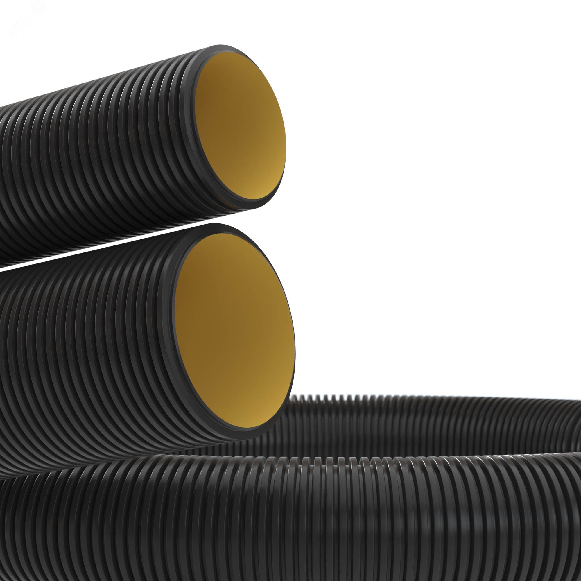 Гибкая двустенная гофрированная труба, с протяжкой. Диаметр 160 мм. Материал: ПНД (полиэтилен низкого давления). Цвет: внешняя стенка – черная, внутренняя стенка – желтая. Степень защиты: IP44/55/67 по ГОСТ 14254-96. Температура монтажа от -25 до +90 градусов по Цельсию. Температура эксплуатации от -55 до +90 градусов по Цельсию. Минимальный радиус изгиба - восемь диаметров. Отличительные особенности: высокая кольцевая жесткость, поставляется в бухтах, наличие нейлоновой протяжки, эластичность трубы даже при низких температурах. Комплект поставки: каждая бухта комплектуется одной соединительной муфтой. Условия монтажа: допускаются только скрытые виды монтажа (в грунте или при монолитном бетоностроении). Используется для защиты кабелей низкого и высокого напряжения от механических повреждений и агрессивного воздействия окружающей среды.