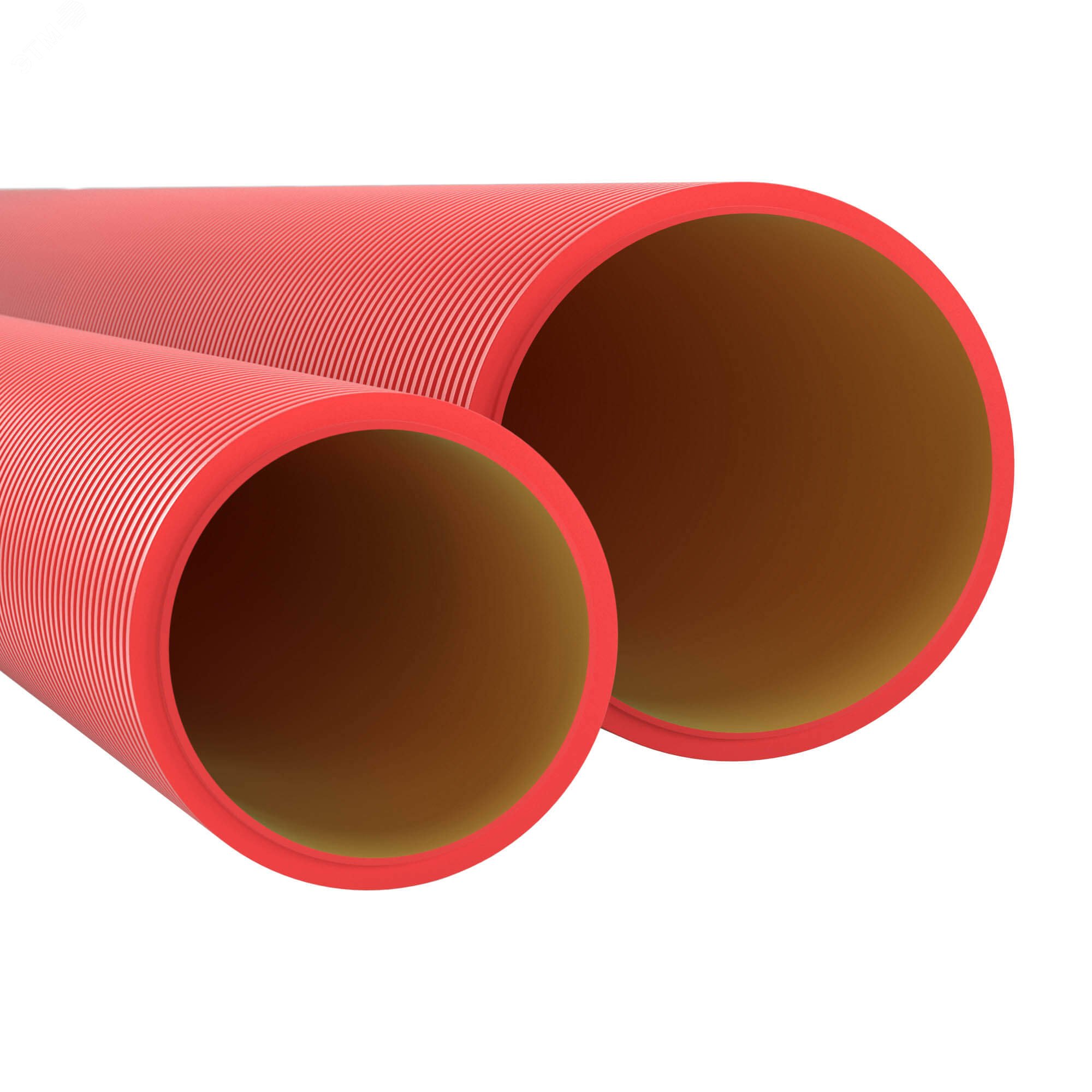 Двустенные жесткие трубы предназначены строго для скрытой прокладки: в грунте или в монолите строений. Трубы выдерживают значительные нагрузки, а потому могут использоваться даже в зонах с высокими нагрузками (например, на участках, предназначенных для проезда автотранспорта). Трубы надежно защищают кабель от любых внешних воздействий. Диаметр трубы 125 мм. Кольцевая жесткость (SN) 24 кПа. Поставляется отрезками по 6 метров. К каждому отрезку в комплекте идет соединительная муфта. Материал - ПНД. Цвет внешней стенки - красный.
