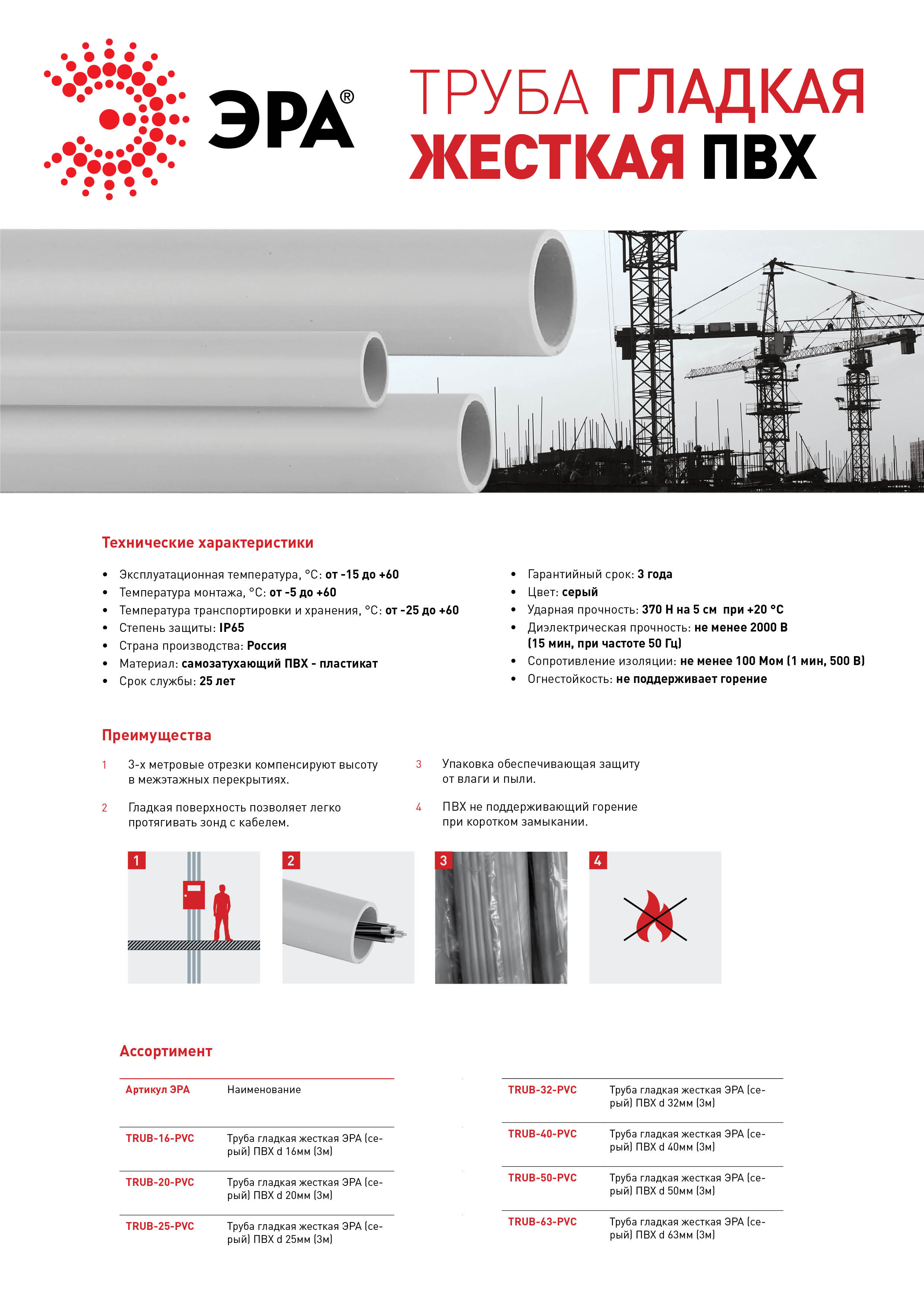 Труба гладкая жесткая ПВХ (серый) d 63мм (3м), производитель: ЭРА — купить с доставкой
