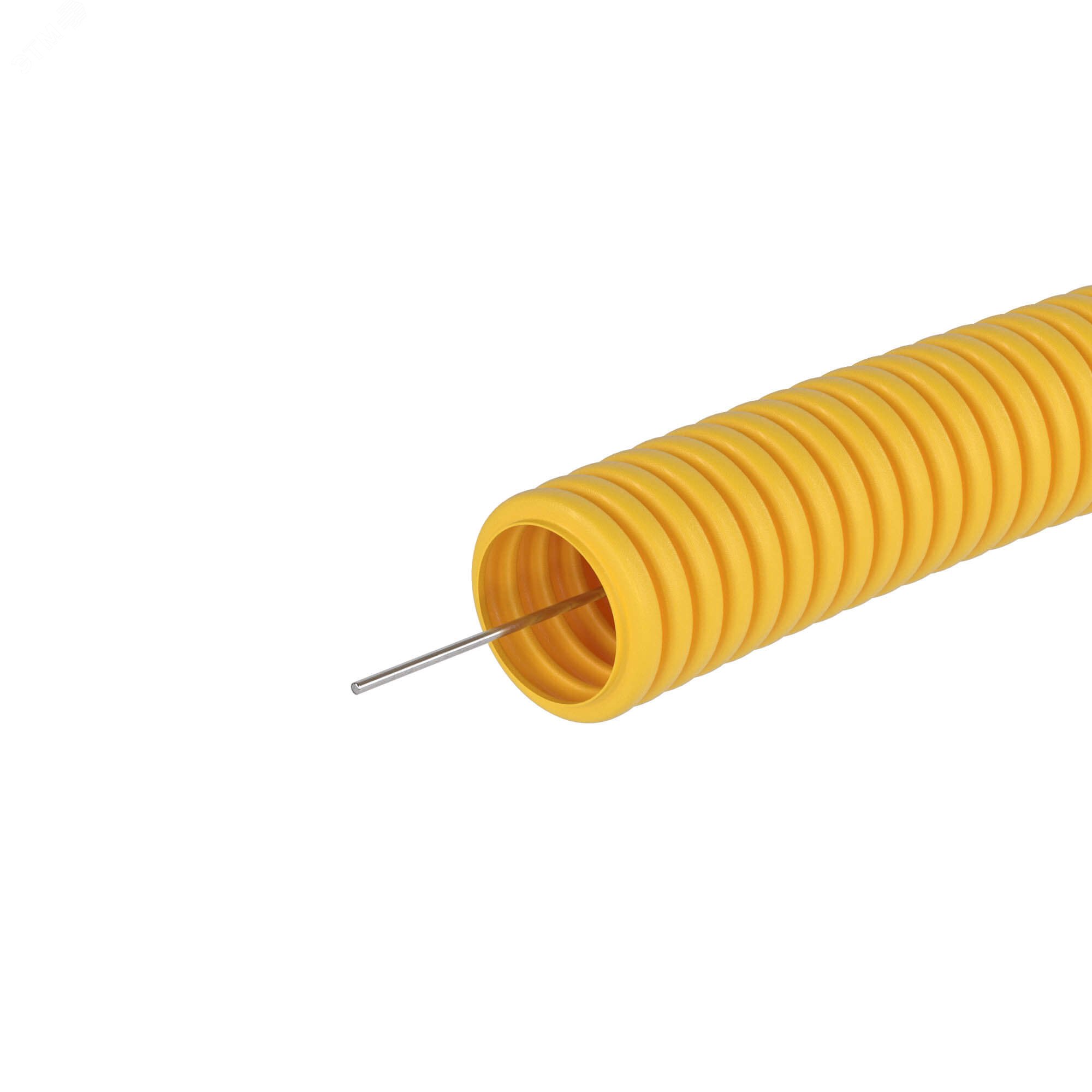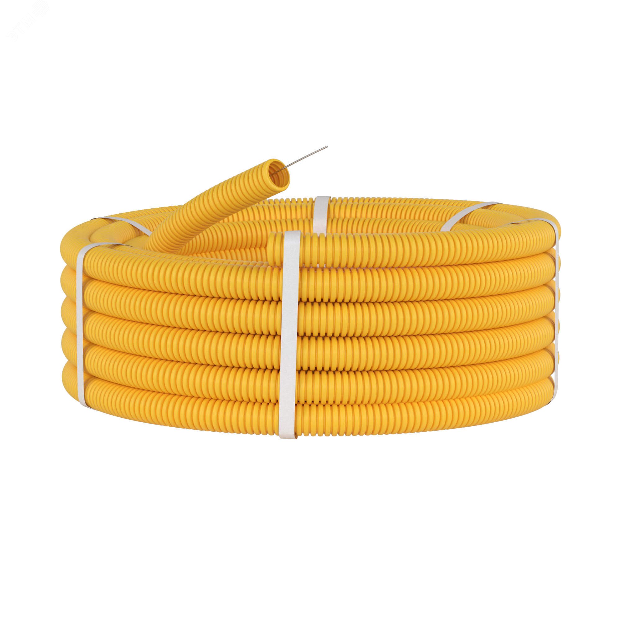 Гибкая гофрированная труба из ПВХ надежно защищает кабель от механических воздействий. Используется для прокладки электрического, компьютерного телефонного кабелей. Труба этого типа прокладывается в стенных штробах, в пустотах фальш-потолков и фальш-стен, в стяжке полов или под фальш-полами. Проволочная протяжка облегчает прокладку кабеля в трубе. Диаметр - 20 мм. Материал – самозатухающий поливинилохлорид (ПВХ). Цвет - желтый. Гофрированные трубы из ПВХ легкой серии могут эксплуатироваться при температуре от – 25 градусовС до + 60 градусовС. Длина – 100 метров.