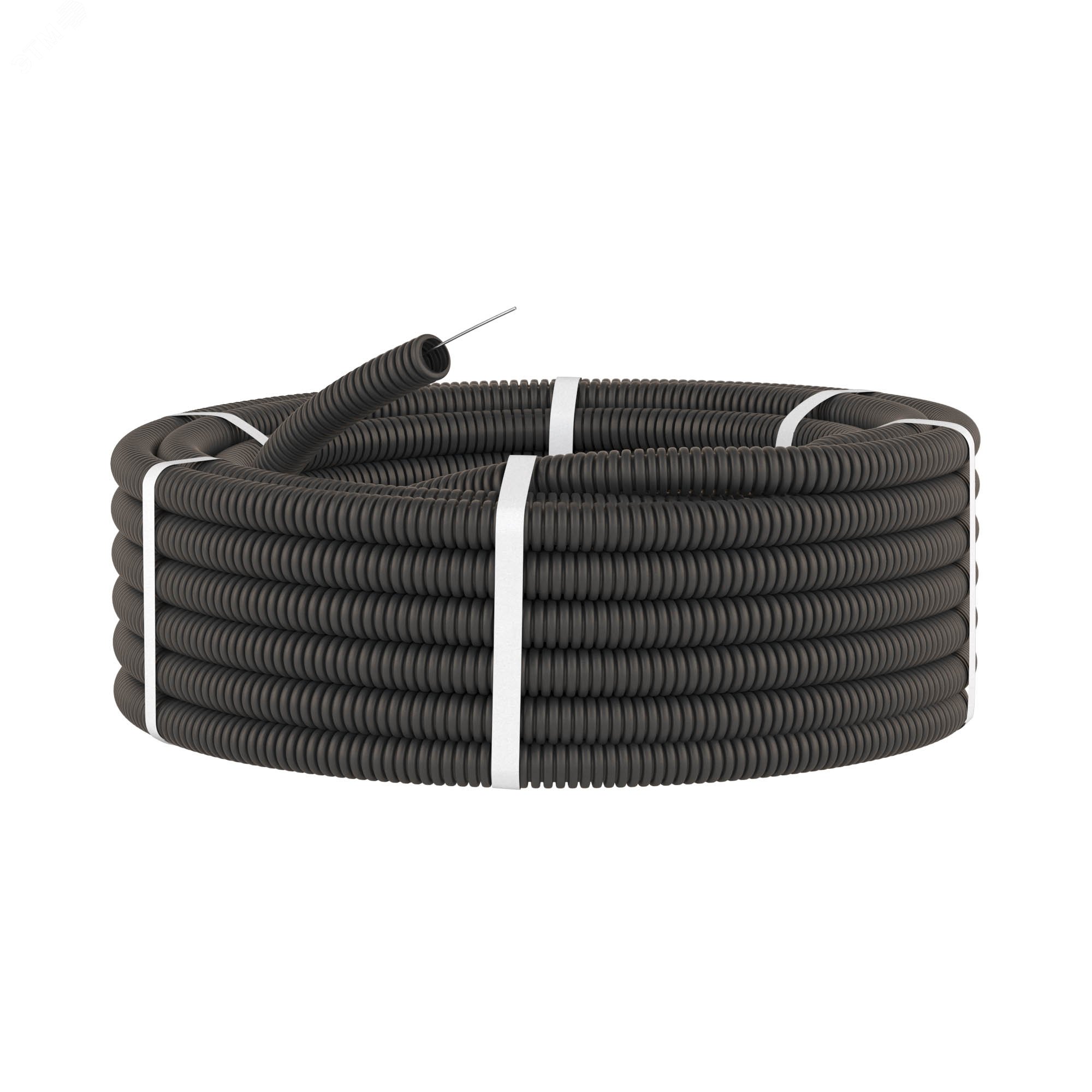Труба ПВХ гибкая гофрированная д.25мм легкая с протяжкой 50м черный, производитель: DKC — купить с доставкой