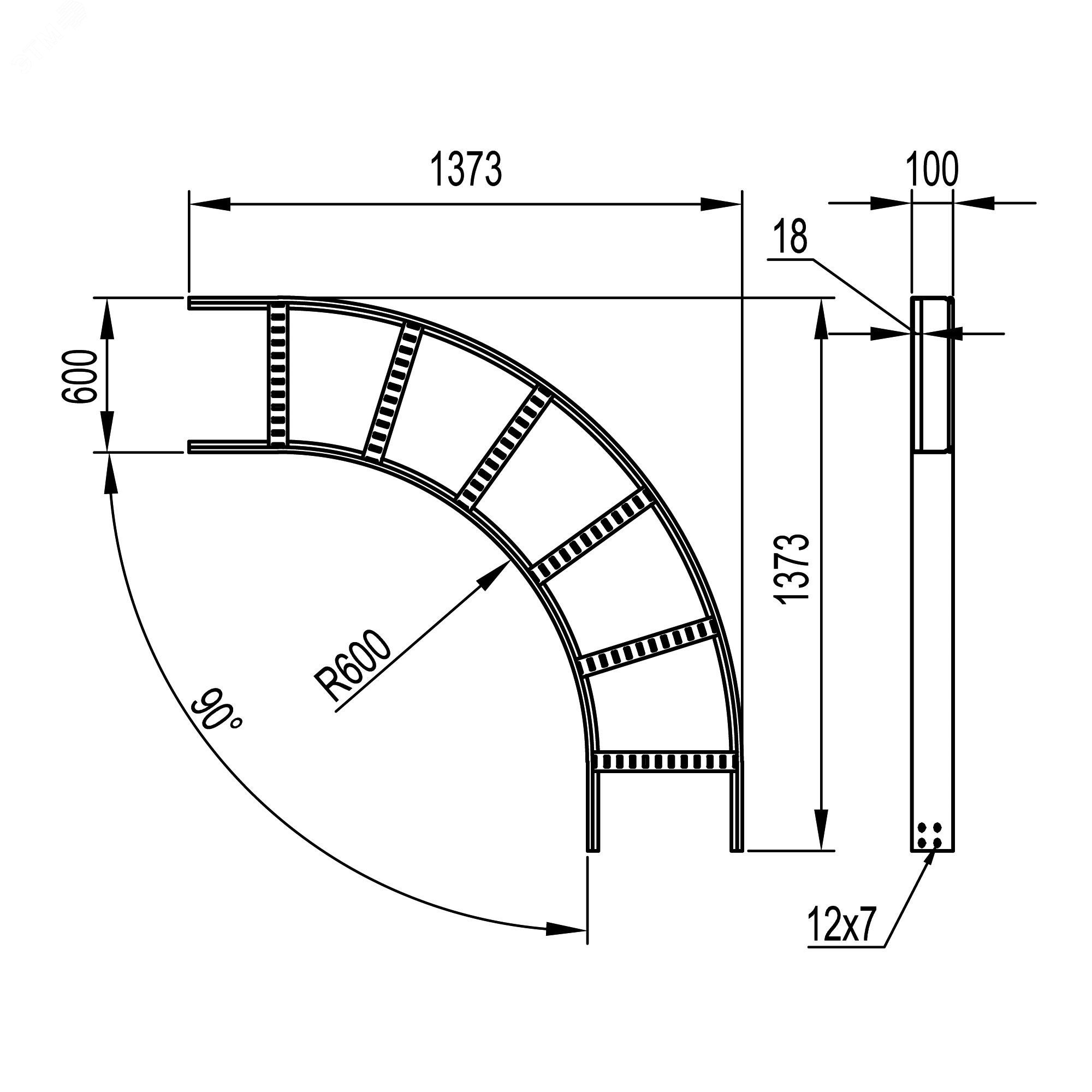 Угол горизонтальный 90 градусов предназначен для организации поворота кабельной трассы на 90 градусов в горизонтальной плоскости. Поставляется в комплекте с метизами и соединительными пластинами (LG1000, CM010620, CM110600, CM220600 в соответствующем аксессуару исполнении). Аксессуар применим с лотком шириной 600 мм и высотой борта 100 мм. Исполнение – ''сталь, оцинкованная по методу Сендзимира''. Имеет радиус скругления 600 мм.