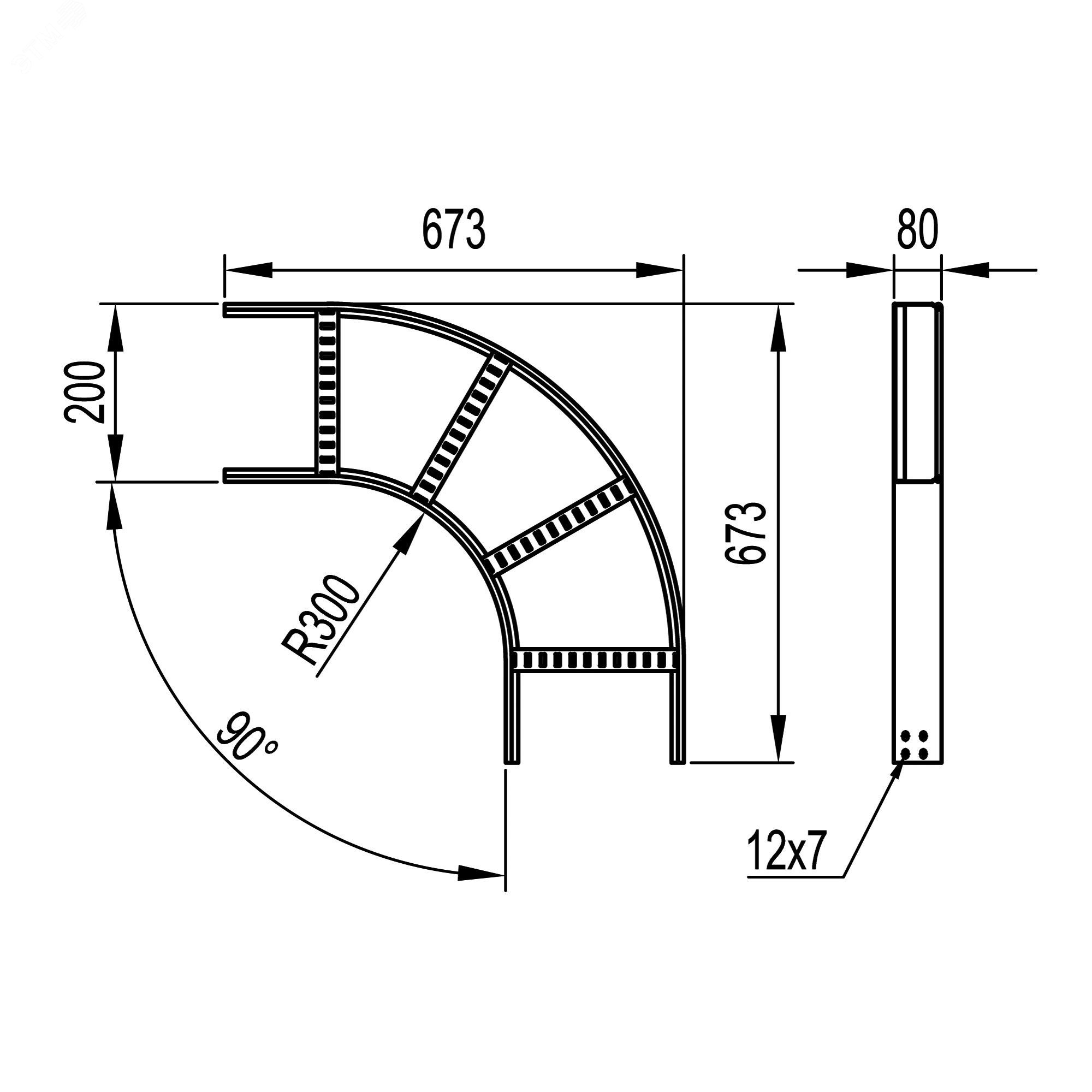 Угол горизонтальный 90 градусов предназначен для организации поворота кабельной трассы на 90 градусов в горизонтальной плоскости. Поставляется в комплекте с метизами и соединительными пластинами (LG8000, CM010620, CM110600, CM220600 в соответствующем аксессуару исполнении). Аксессуар применим с лотком шириной 200 мм и высотой борта 80 мм. Исполнение – ''сталь, оцинкованная по методу Сендзимира''. Имеет радиус скругления 300 мм.