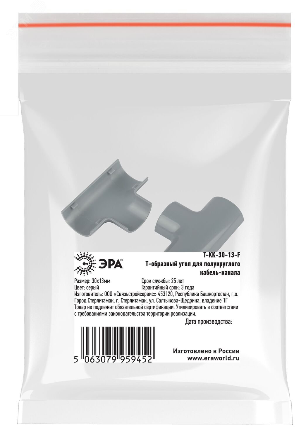 Угол т-образный T-KK-30-13-F для полукруглого кабель-канала серый 30х13мм 2шт/комплект-необходимый аксессуар для создания единой кабельной трассы. Позволяет производить соединения и ответвеления при монтаже полукруглого кабель-канала. Страна производства Россия. Тип крепления защёлкивание (под нажимом)