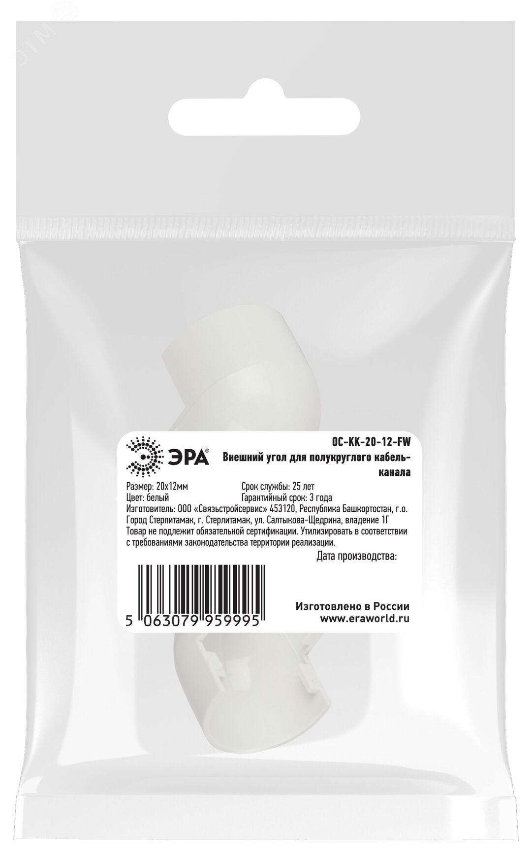 Внешний угол ЭРА OC-KK-20-12-FW для полукруглого кабель-канала белый 20х12мм 2 шт в упаковке. Данные аксессуары необходимы для создания единой кабельной трассы. Они позволяют производить соединения и ответвеления при монтаже полукруглого кабель-канала. Выполнены из АБС-пластика
