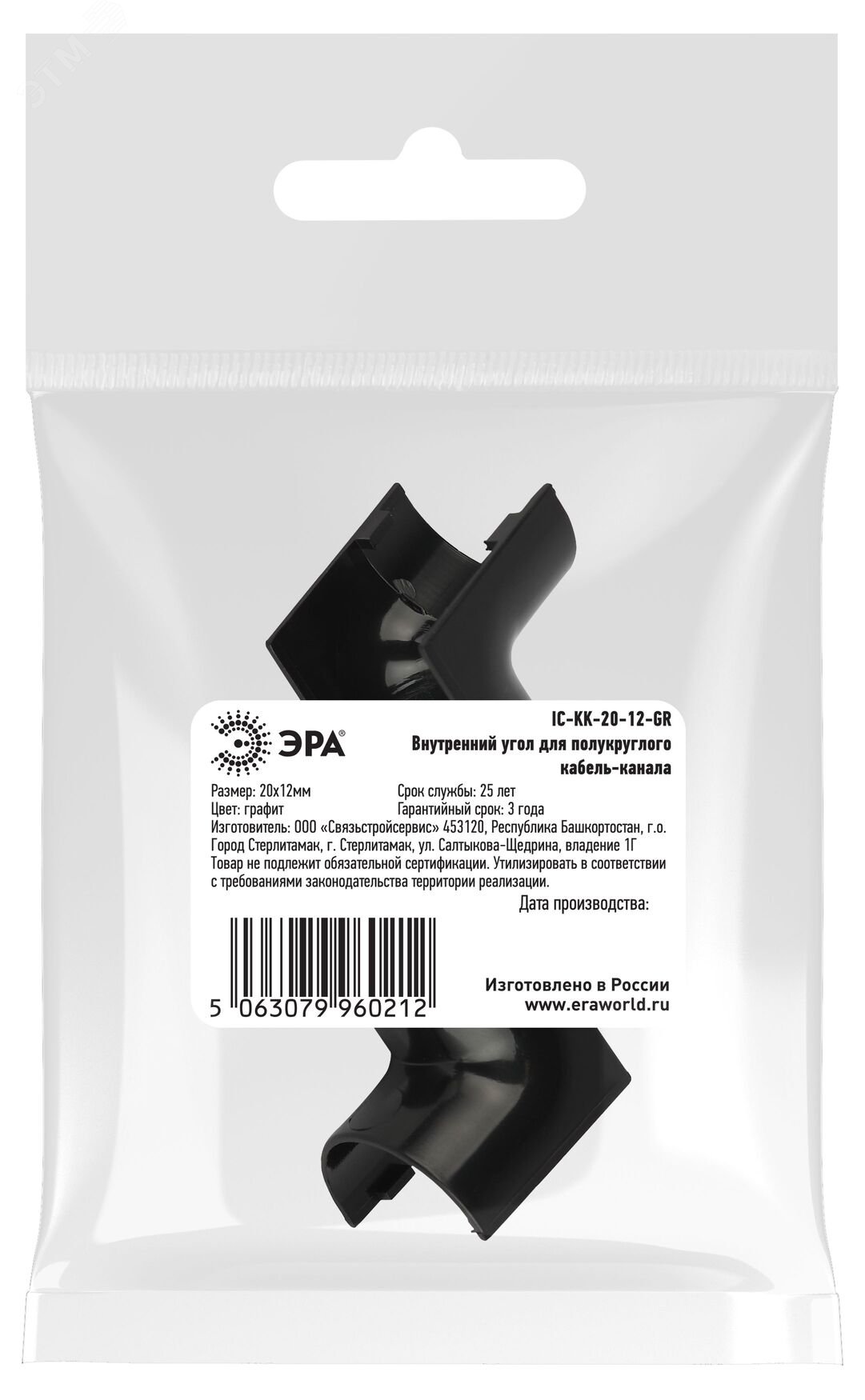 Внутренний угол ЭРА IC-KK-20-12-GR для полукруглого кабель-канала графит 20х12мм 2 шт в упаковке. Данные аксессуары необходимы для создания единой кабельной трассы. Они позволяют производить соединения и ответвеления при монтаже полукруглого кабель-канала. Выполнены из АБС-пластика