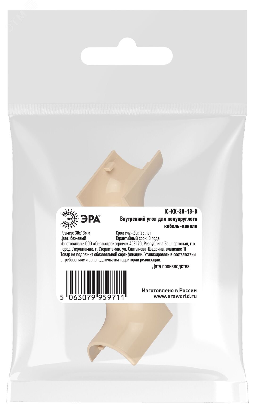 Угол внутренний для полукруглого кабель-канала 30х13мм бежевый IC-KK-30-13-B 2шт/комплект, производитель: ЭРА — купить с доставкой