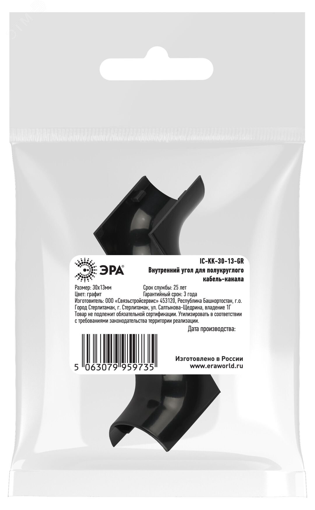 Внутренний угол ЭРА IC-KK-30-13-GR для полукруглого кабель-канала графит 30х13мм 2 шт в упаковке. Данные аксессуары необходимы для создания единой кабельной трассы. Они позволяют производить соединения и ответвеления при монтаже полукруглого кабель-канала. Выполнены из АБС-пластика