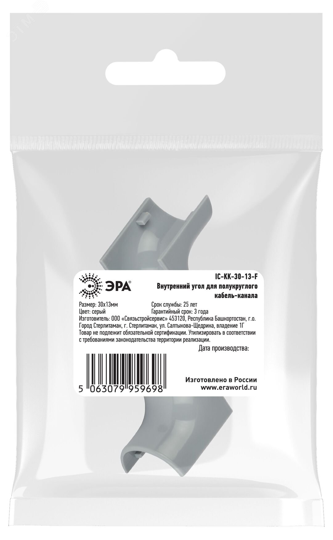 Внутренний угол ЭРА IC-KK-30-13-F для полукруглого кабель-канала серый 30х13мм 2 шт в упаковке. Данные аксессуары необходимы для создания единой кабельной трассы. Они позволяют производить соединения и ответвеления при монтаже полукруглого кабель-канала. Выполнены из АБС-пластика