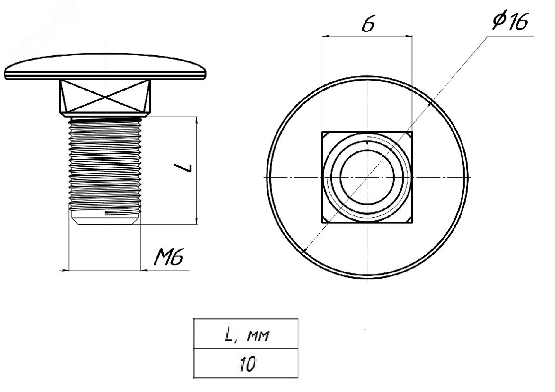 Характеристики: Винт с гладкой головкой и квадратным подголовникомМ6х10 DIN 603