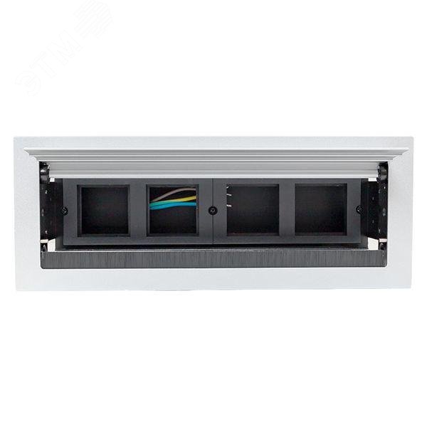 Встраиваемый настольный лючок, 8 модей, C-Line. Настольный лючок – изделие, включающее в себя верхнюю открывающуюся крышку и кронштейны для крепления приборных рамок и приборной коробки. Настольный лючок предназначен для размещения ЭУИ в столе. Монтаж производится в предварительно подготовленное отверстие 284х104 мм для 8 модулей. Сетевой кабель питания (2 метра), приборная коробка, приборные рамки и крепеж в комплекте.