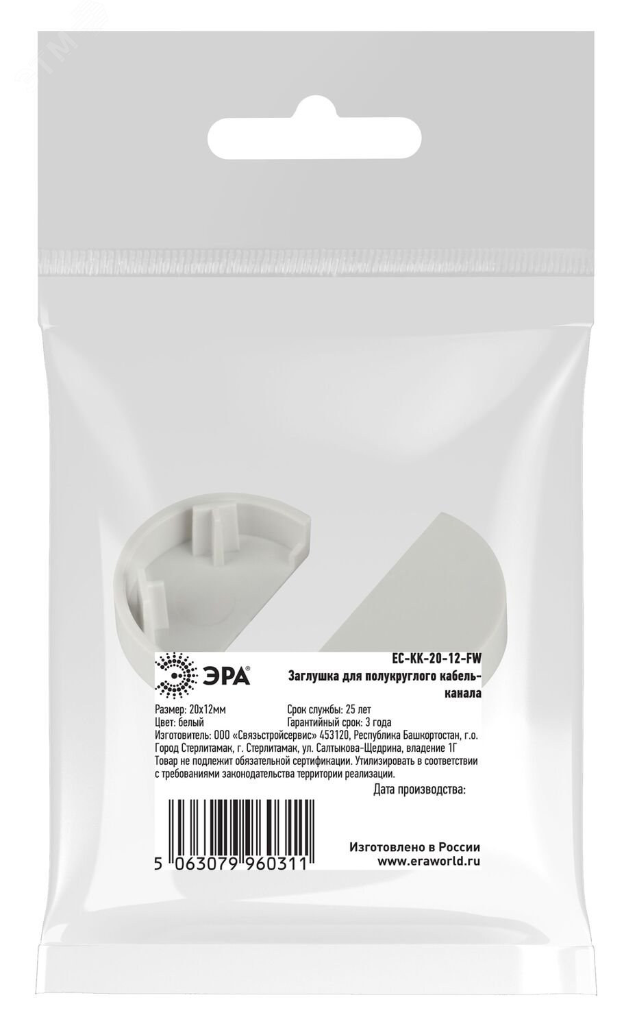 Заглушка EC-KK-20-12-FW для полукруглого кабель-канала белая 20х12мм 2шт/комплект-необходимый аксессуар для создания единой кабельной трассы. Позволяет производить соединения и ответвеления при монтаже полукруглого кабель-канала. Страна производства Россия. Тип крепления защёлкивание (под нажимом)