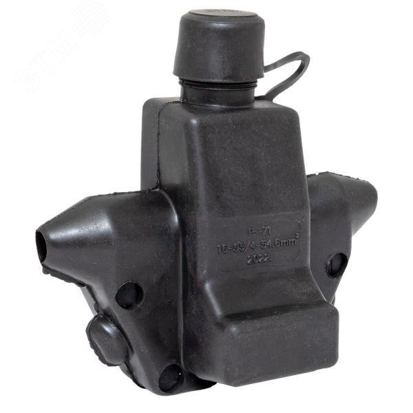 Зажим типа p-71 предназначен для электрического соединения изолированного провода со стороны магистрали и неизолированного провода со стороны ответвления Имеют раздельную затяжку болтов на магистральной и ответвительной линии. При подключении ответвительных проводов необходимо зачистить концы от изоляции. Контакт с изолированным проводом магистрали обеспечивается прокалыванием изоляции, с зачищенным проводом – прижимной пластиной. При достижении момента, необходимого для создания надежного электрического контакта, происходит срыв головки болта магистральной линии. Отдельный болт на ответвительной стороне позволяет производить многократное переподключение абонентов, не снимая зажим с магистрали. Поставляется в комплекте с защитным кожухом. На прокалывающие и прижимные элементы нанесена контактная смазка. Зажим и кожух устойчивы к ультрафиолетовому и солнечному излучению, высоким и низким температурам, коррозии и агрессивным атмосферным воздействиям.