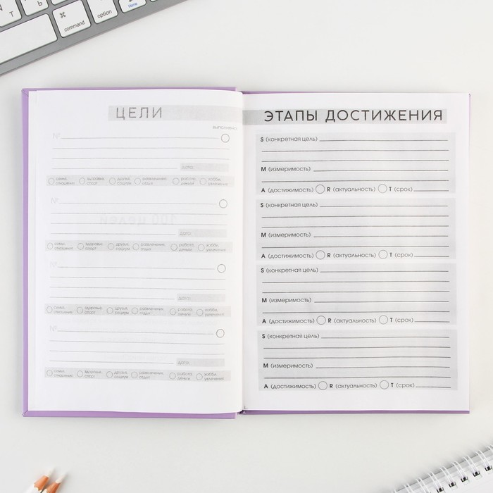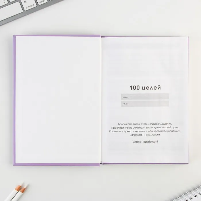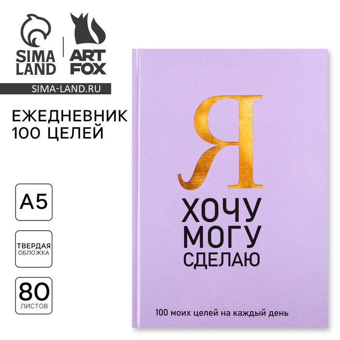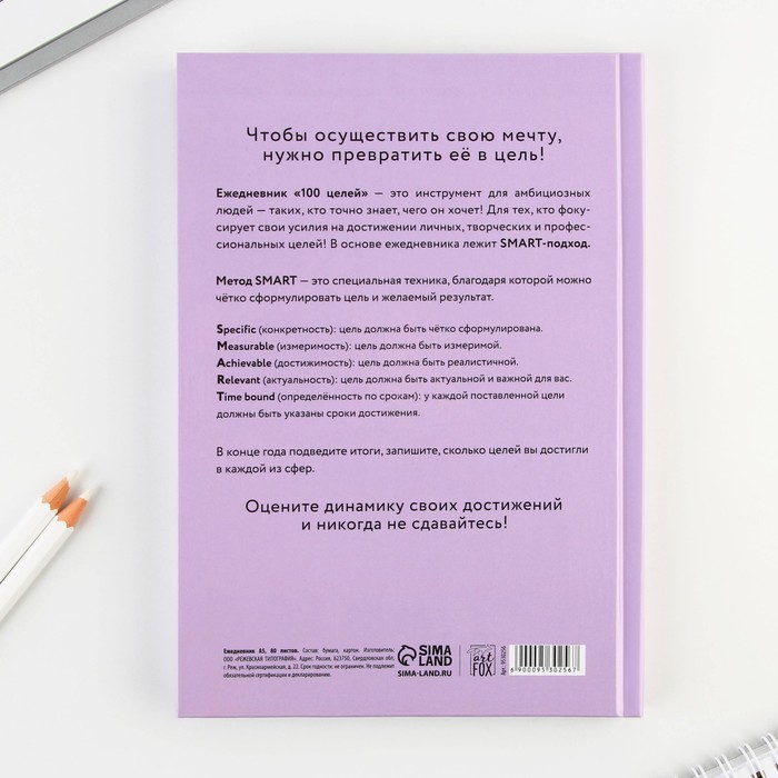Ежедневник 100 целей «Фиолетовый». Твердая обложка, глянцевая ламинация, формат А5, 80 листов. — Характеристики