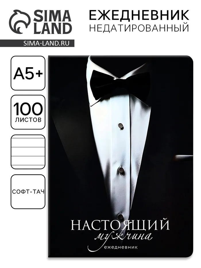 Ежедневник А5+, 100 листов, мягкая обл., софт-тач «Костюм» — Характеристики