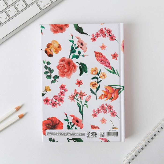 Ежедневник А5, 160 листов, в твердой обложке «Цветы» — Характеристики