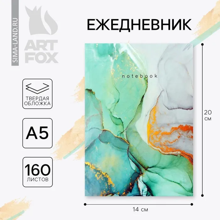 Ежедневник А5, 160 листов, в твердой обложке «Зеленый мрамор» — Характеристики