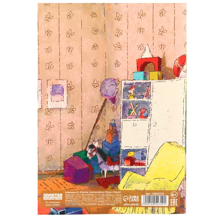 Ежедневник А5, 40 листов, Союзмультфильм, Малыш и Карлсон — Характеристики