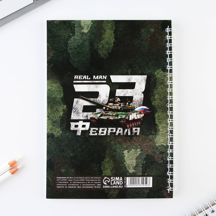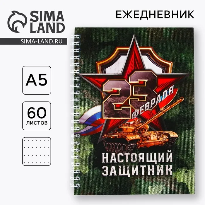 Ежедневник А5, 60 листов, недатированный, в точку «23 февраля: Настоящий защитник» — Характеристики