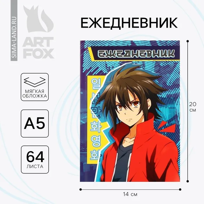 Ежедневник А5, 64 листа в точку, мягкая обложка «Аниме парень» — Характеристики