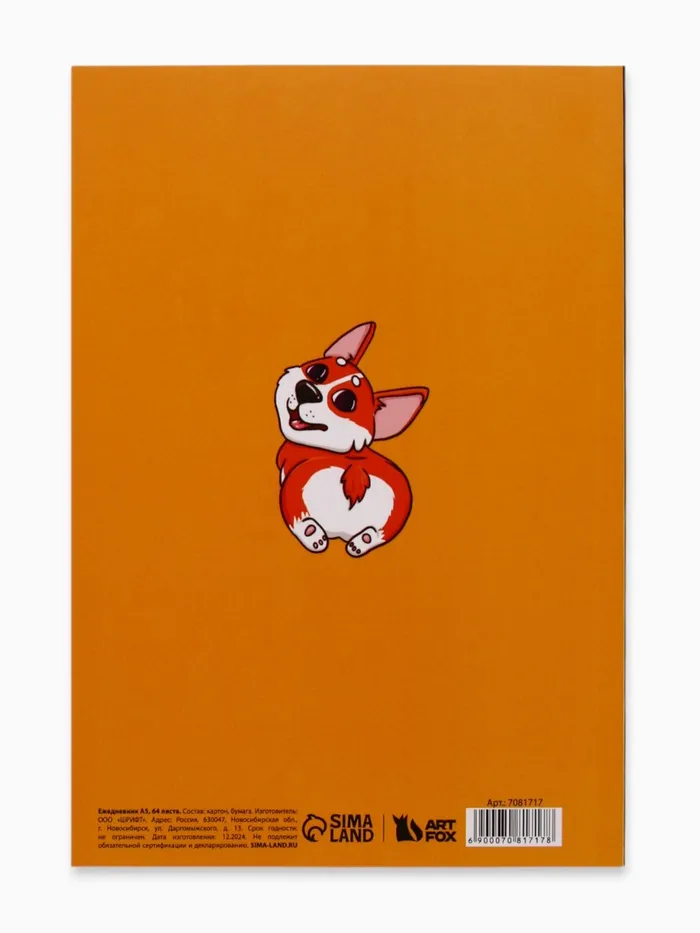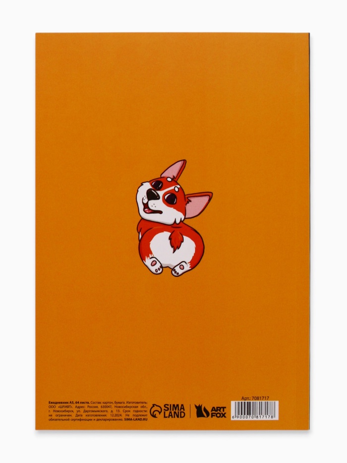 Ежедневник А5, 64 листа в точку, мягкая обложка «Корги» — Характеристики