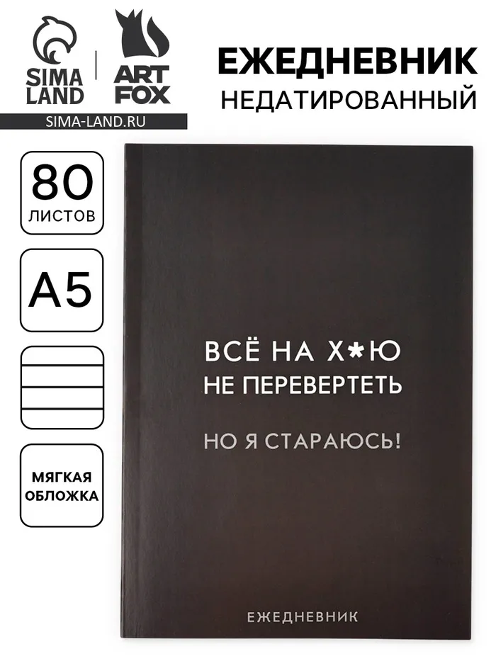 Ежедневник А5, 80 л. Тонкая обложка «Стараюсь» — Характеристики