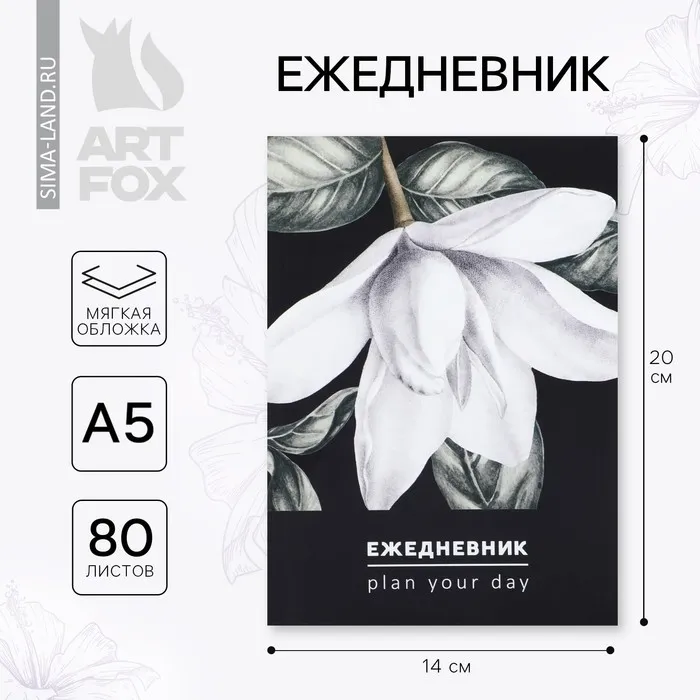 Ежедневник А5, 80 л. Тонкая обложка "Цветок" — Характеристики