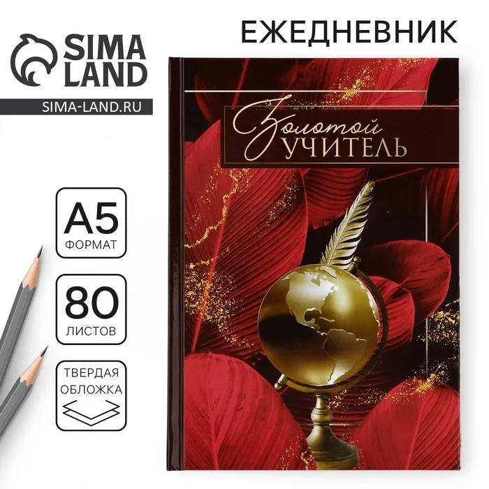 Ежедневник А5, 80 л, твердая обложка, бордовый «Золотому учителю» — Характеристики