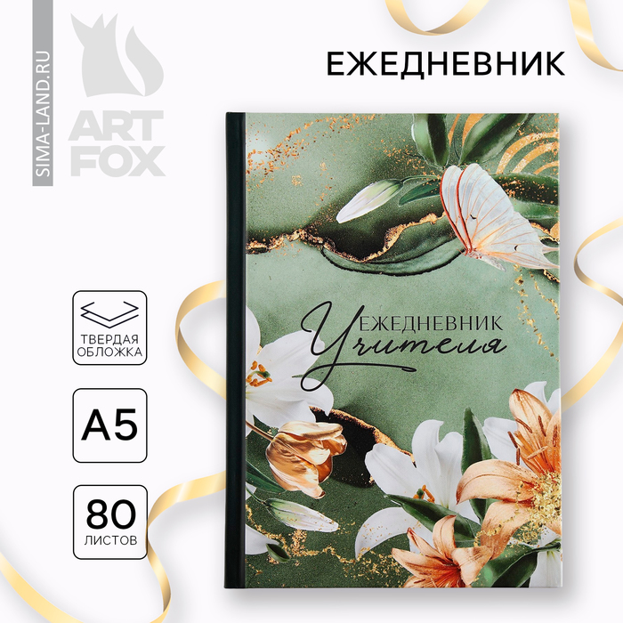 Ежедневник А5, 80 л, твердая обложка «Учитель зеленый лилии и золото» — Характеристики