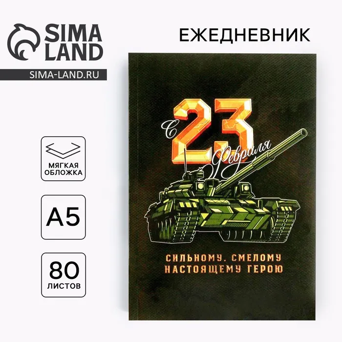 Ежедневник А5, 80 листов, недатированный, в мягкой обложке «23 февраля» — Характеристики