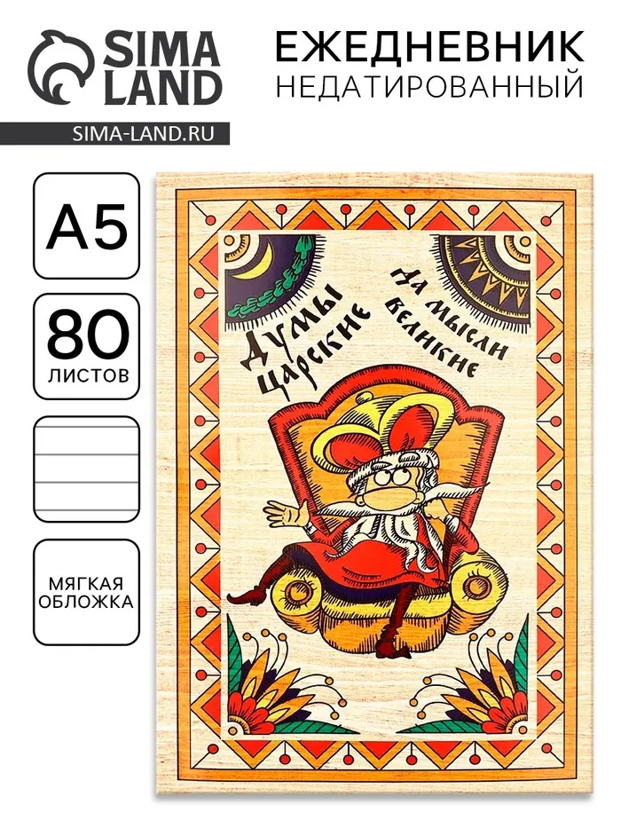 Ежедневник А5, 80 листов, недатированный, в мягкой обложке «Думы царские да мысли великие» — Характеристики