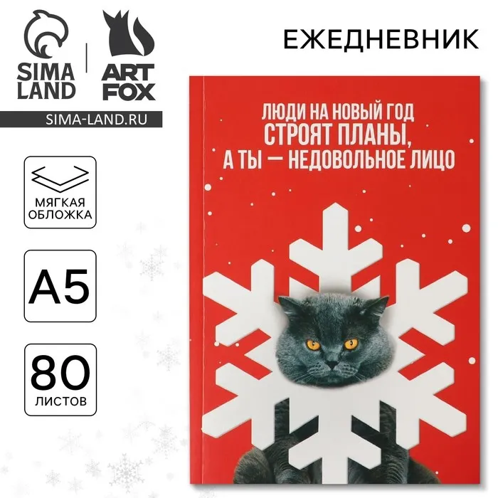 Ежедневник А5, 80 листов, недатированный, в мягкой обложке «Новый год: Недовольное лицо» — Характеристики