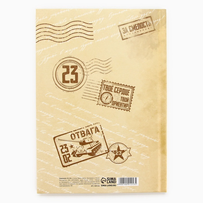 Ежедневник А5, 80 листов, недатированный, в твердой обложке «23 февраля» — Характеристики