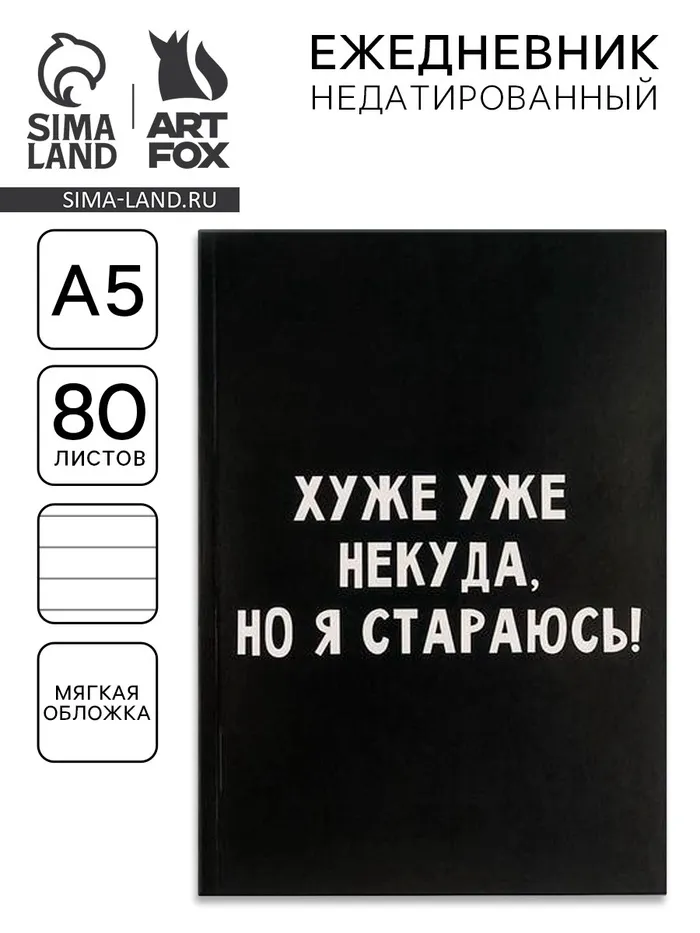 Ежедневник А5, 80 листов в тонкой обложке «Хуже уже некуда, но я стараюсь!» — Характеристики