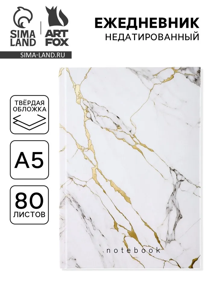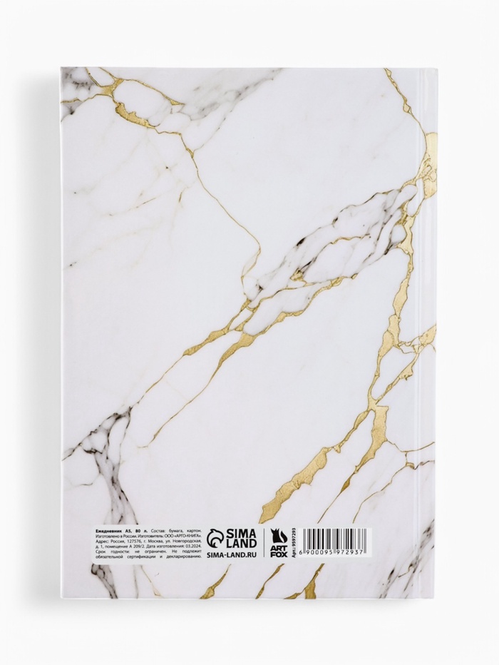 Ежедневник А5, 80 листов в твердой обложке «Белый мрамор» — Характеристики