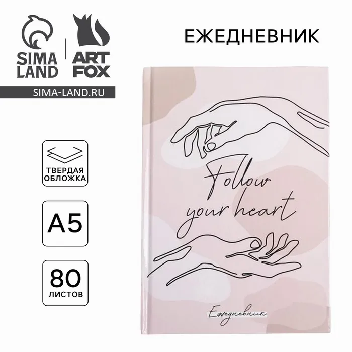Ежедневник А5, 80 листов в твердой обложке Follout your heart — Характеристики