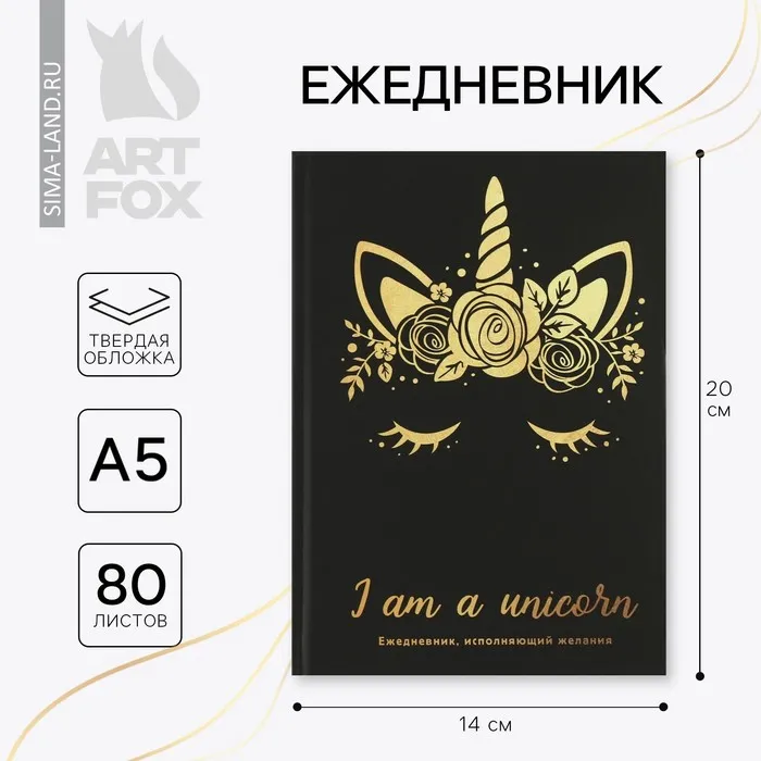 Ежедневник А5, 80 листов в твердой обложке «Я единорог» — Характеристики