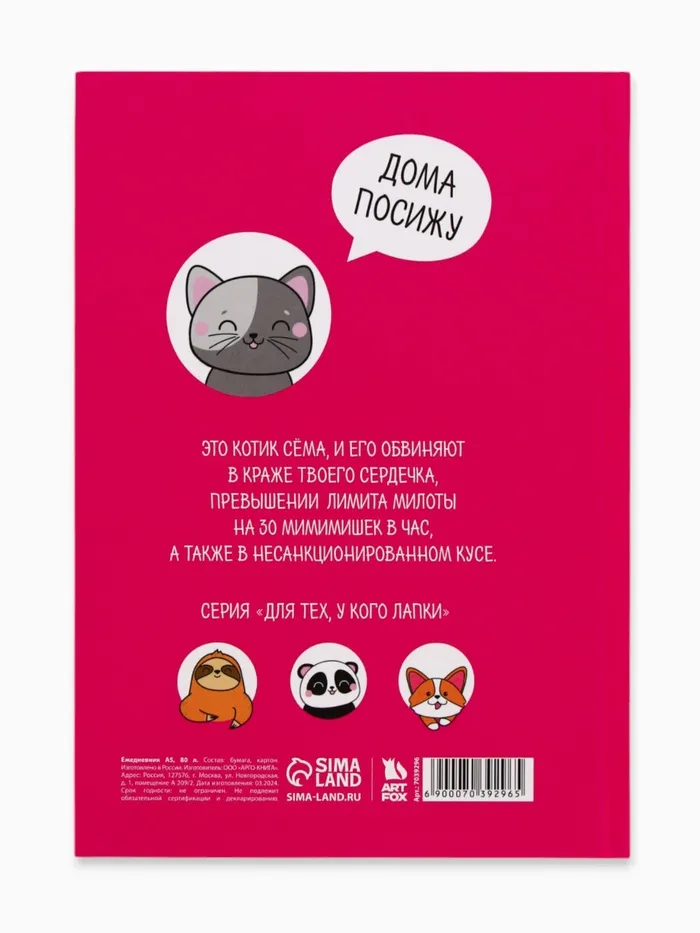 Ежедневник А5, 80 листов в твердой обложке «Котик. Серия для тех у кого лапки» — Характеристики