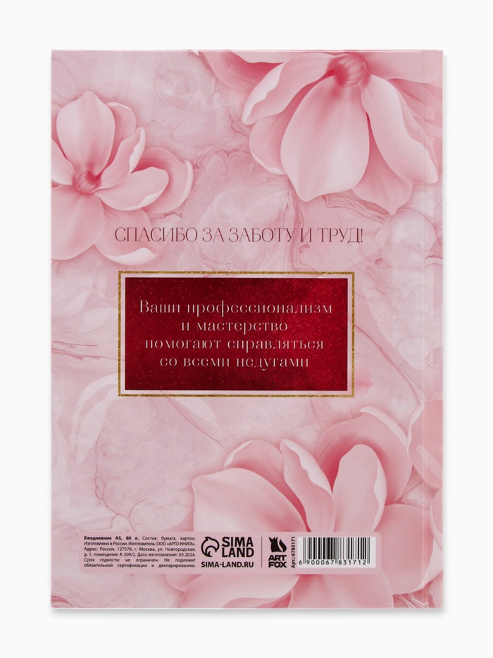 Ежедневник А5, 80 листов в твердой обложке «Лучшему врачу» — Характеристики