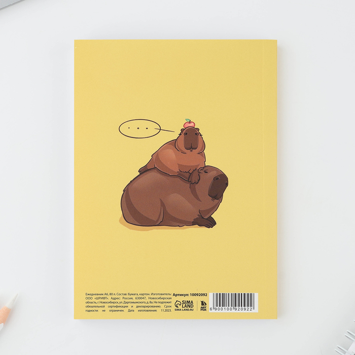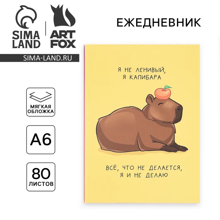 Ежедневник А6, 80 л. Мягкая обл. «Капибара» — Характеристики