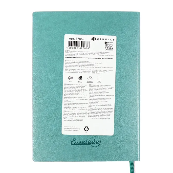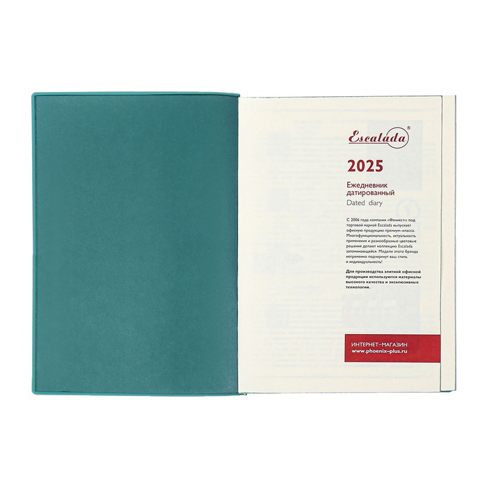 Ежедневник датированный 2025, A6+, 176 листов, ESCALADA, мягкая обложка из искусственной кожи, блинтовое тиснение, тонированный блок 70 г/м2, зеленый — Характеристики